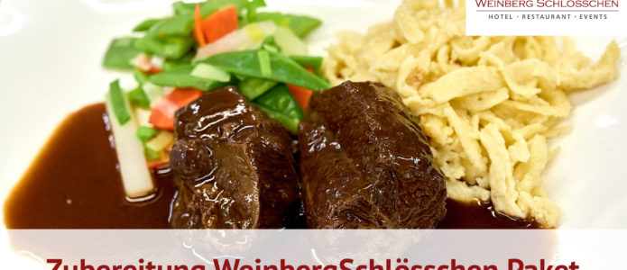 Vielen Dank, dass Ihr Euch für unser WeinbergSchlösschen Paket entschieden habt. Hier zeigen wir Euch kurz, wie Ihr den Paket-Inhalt zubereitet: Hier in kurzen Schritten die Fertigstellung Brot Das Brot aus der Folie nehmen und bei 160°C ca 25 Minuten im Ofen aufbacken Ochsenbäckchen Wasser in einem Topf aufkochen und auf mittlere Stufe zurückstellen und … Zubereitung Weinbergschlösschen für Zuhause weiterlesen