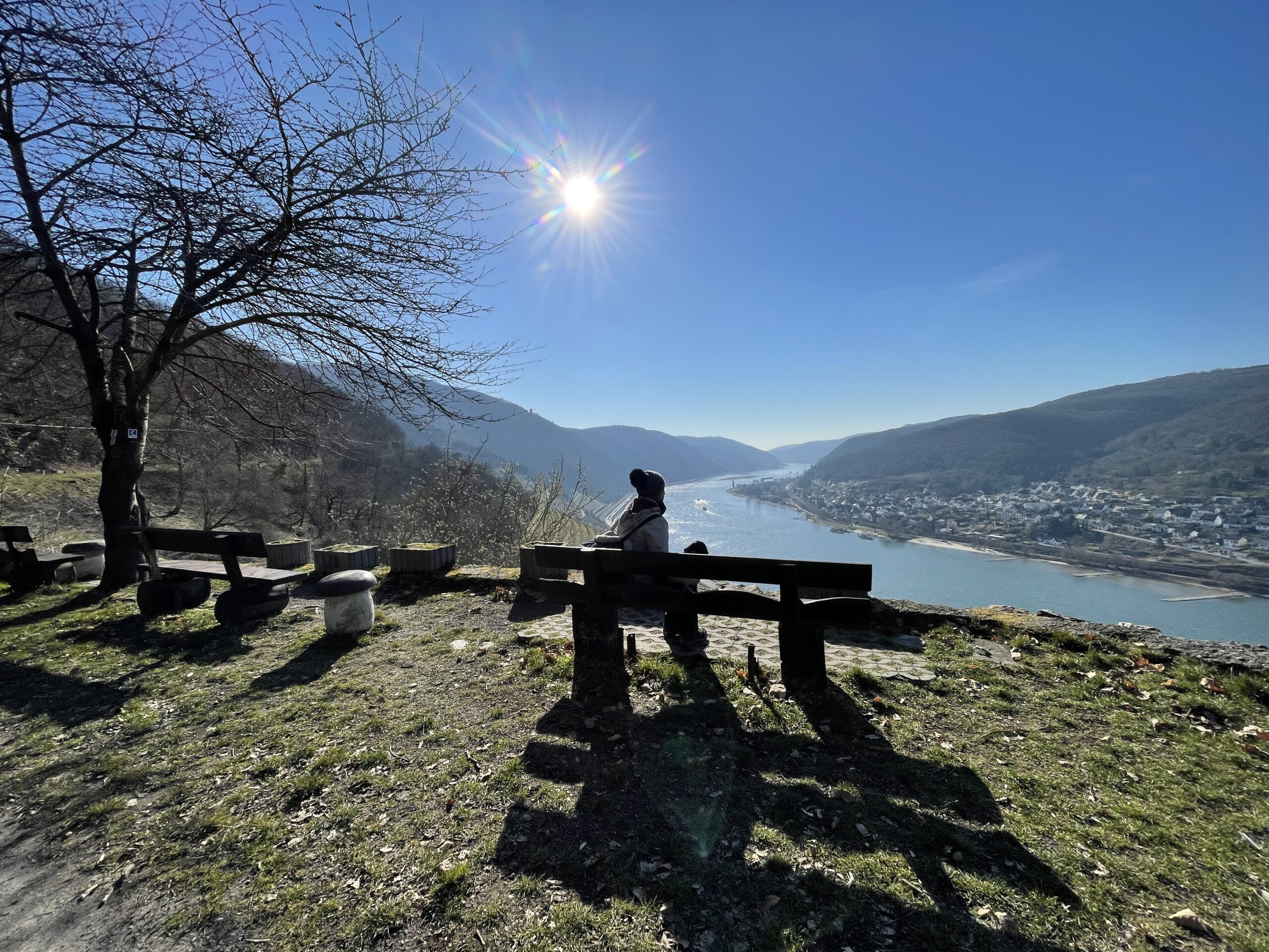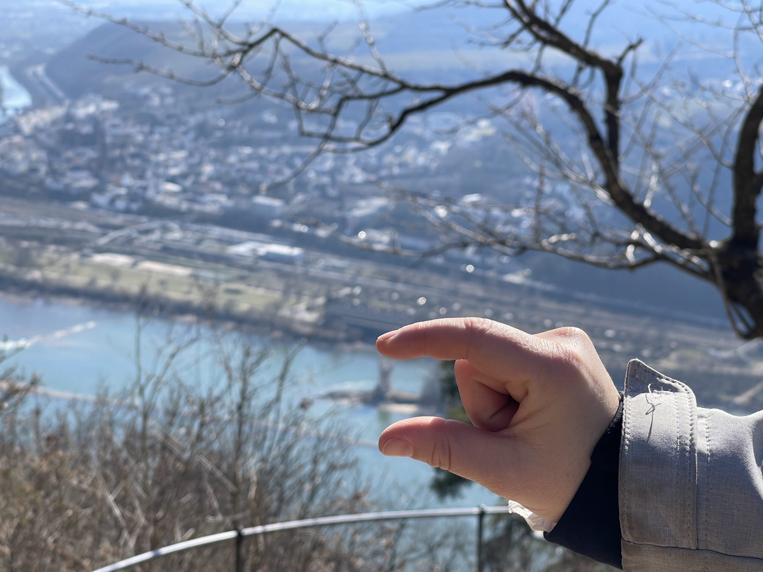 Das sich dieser beschwerliche Weg nochmal auszahlt hätten wir so nicht gedacht. Hier hat man einen Wahnsinnsblick auf Bingen, schaut selbst.