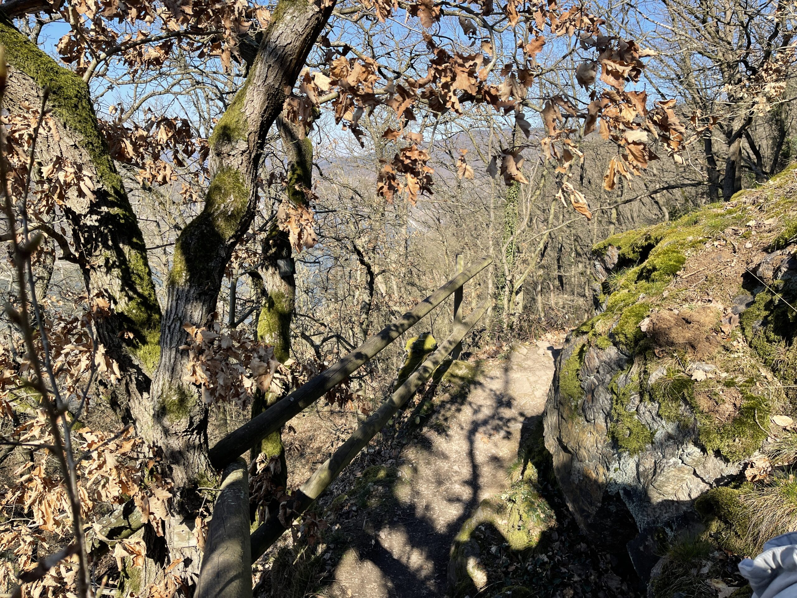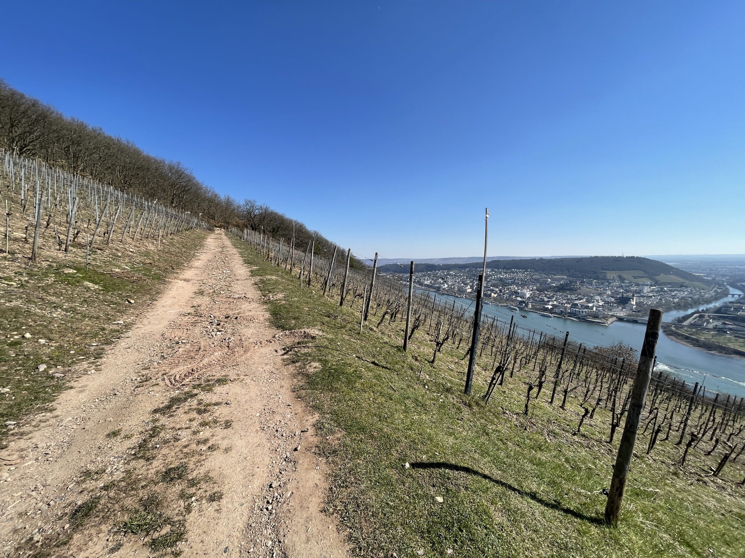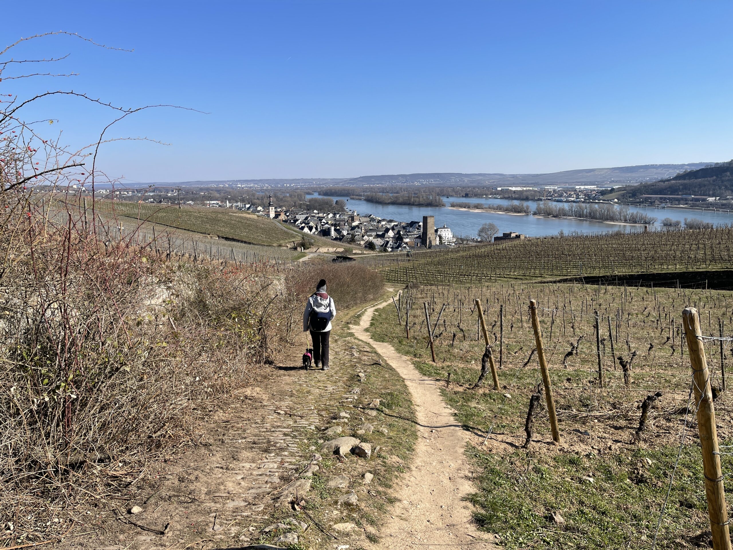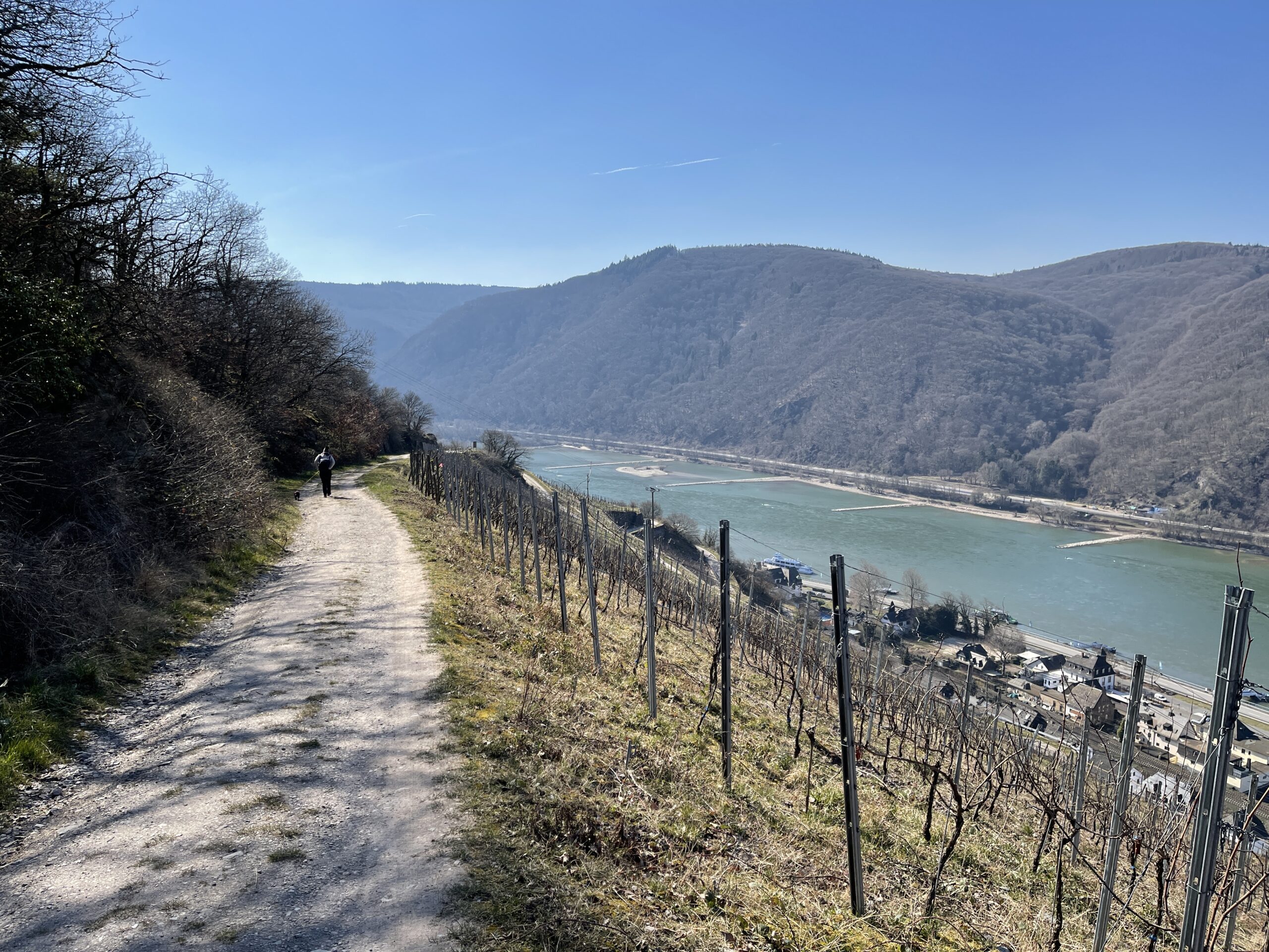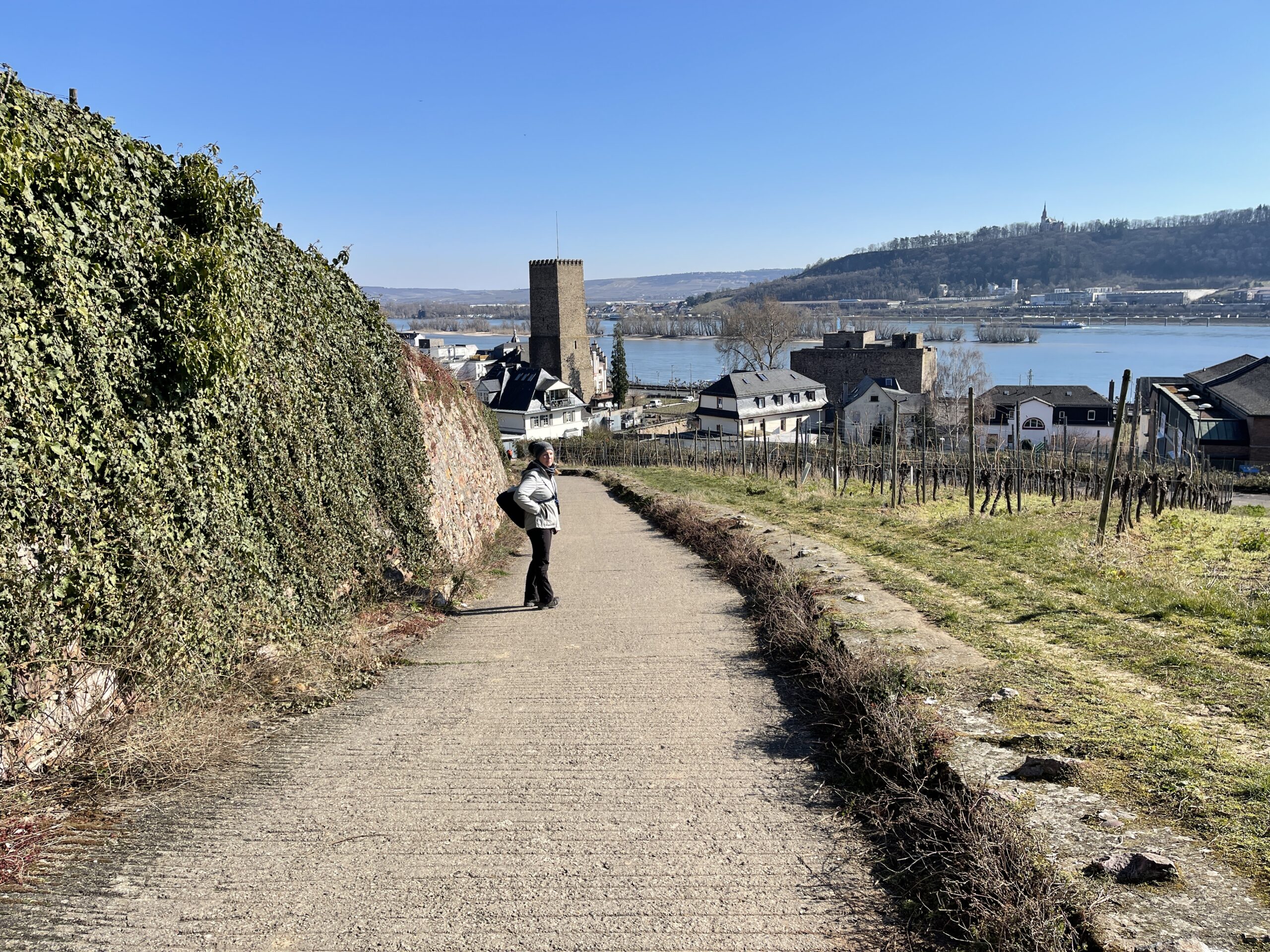 Der Original Rheinsteig-Weg führt runter nach Assmannshausen und wieder hinauf. Es gibt auch einen direkten Weg Richtung Rüdesheim oben entlang, ca. 2km weniger. Die 2km mehr, sehen dann so aus, es geht nur bergauf 😓.