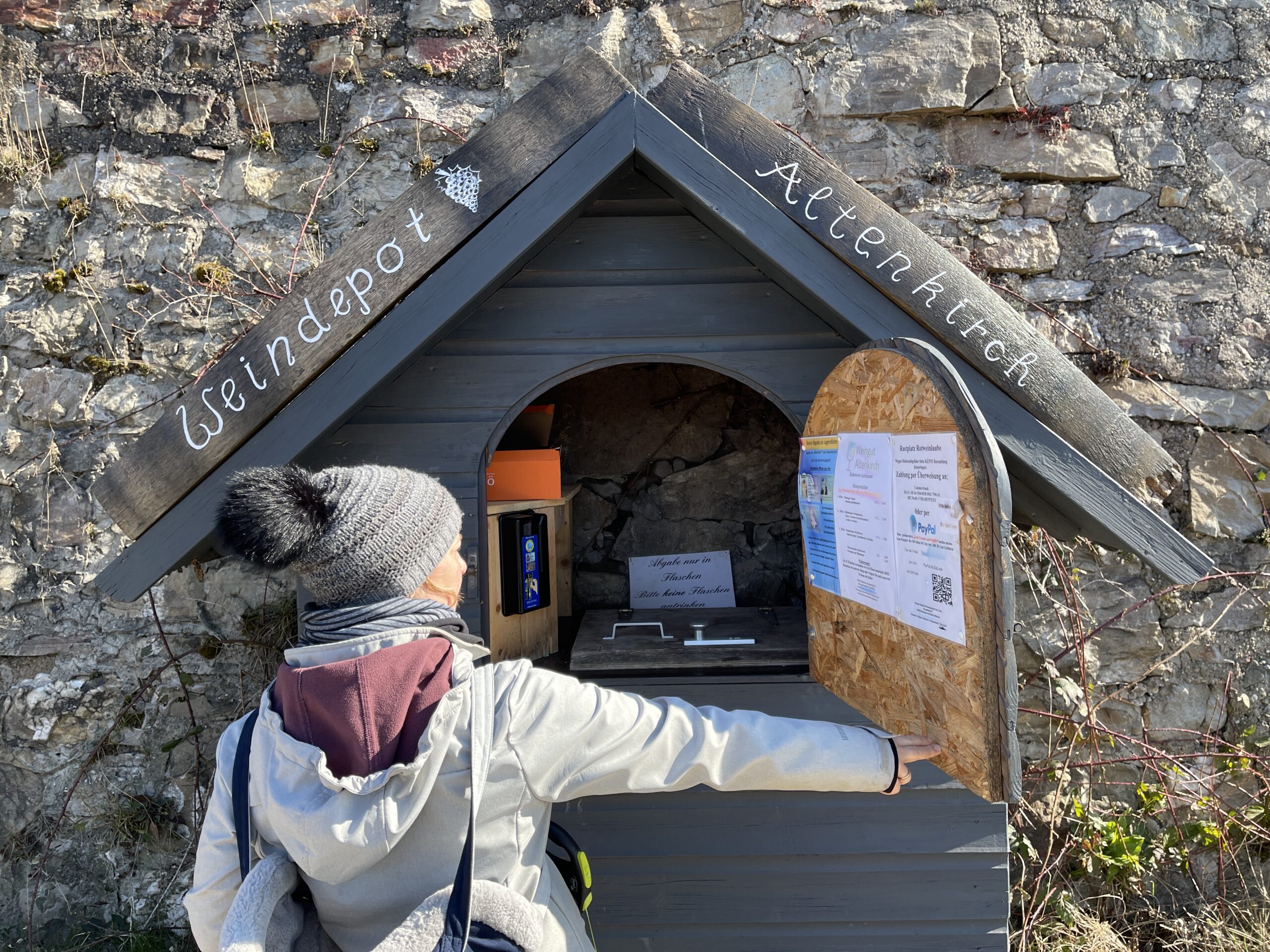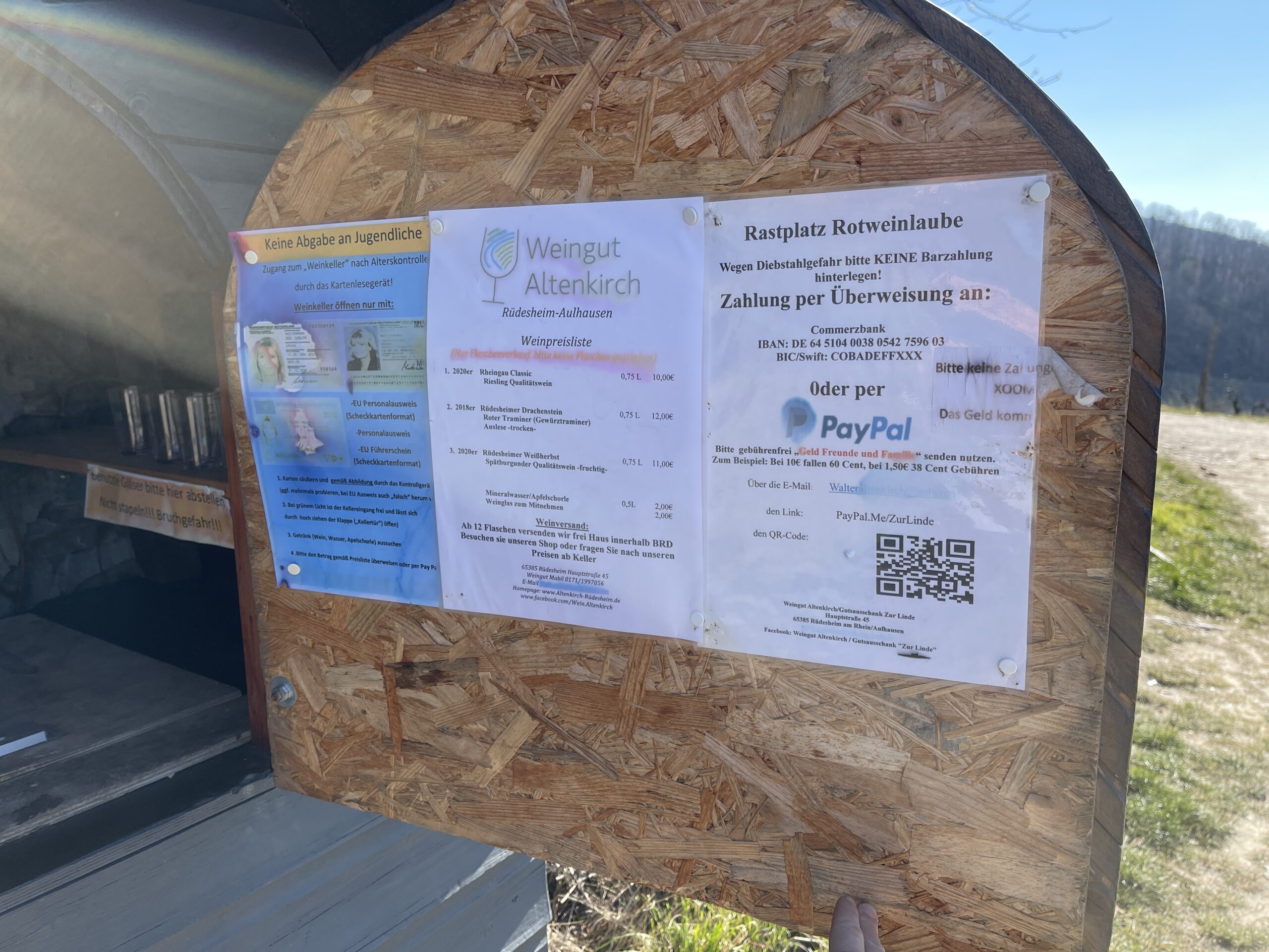 Und was zu trinken gibt es auch, solche Weinautomaten haben wir 2 entdeckt. Es handelt sich um das renommierte Weingut Altenkirchen aus Lorch.