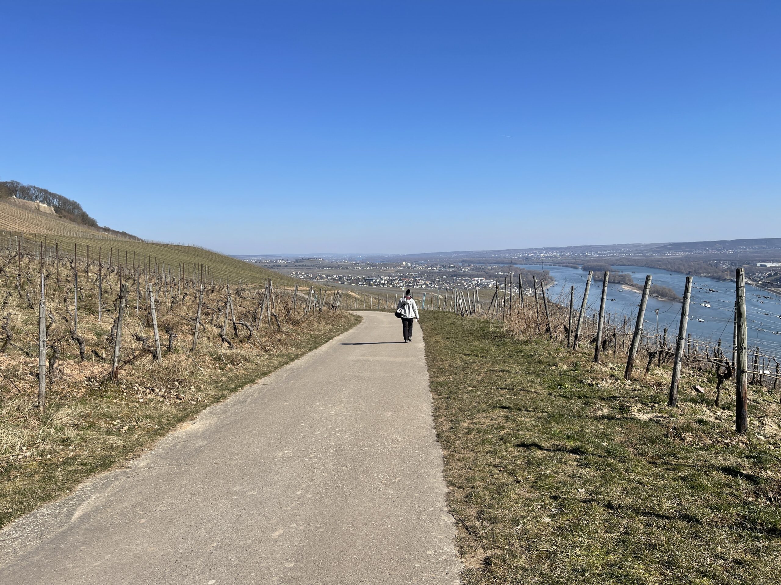 Wenn man hier in der Gegend wohnt, war man schön etliche Male an der Germania, so verlassen wir den Hauptweg und gehen direkt durch die Weinberge nach Rüdesheim zur Fähre.