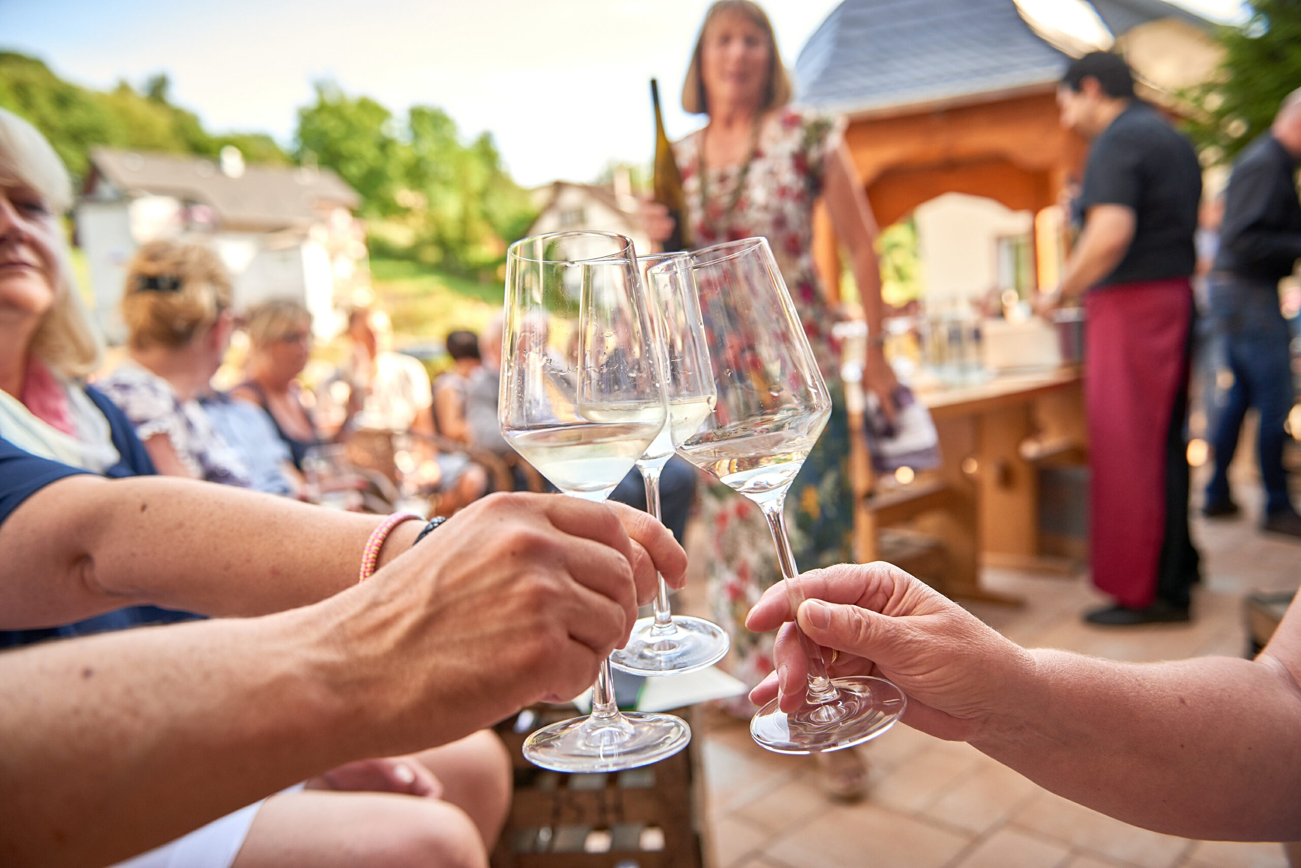 Auf dem ganzen Gelände verteilt und in der Küche findet Ihr kleine Kochstationen und Winzern mit tollen Sommergerichten und knackige kühle Weine bei denen Euer Herz höher schlägt. Und zur späterer Stunde haben wir noch eine tolle Überraschung für Euch😉. Ihr werdet Euch fühlen wie im Urlaub🏝️🍹.